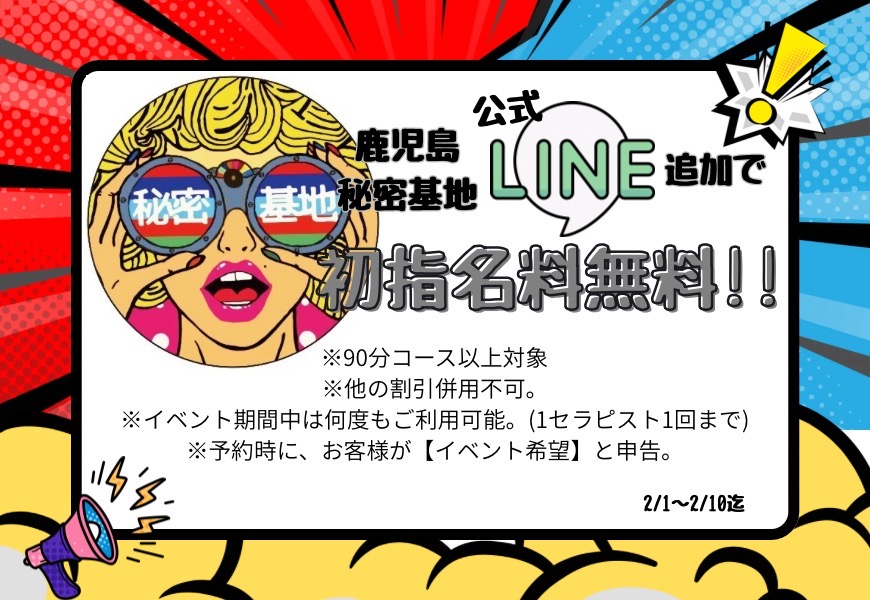 【2/1〜2/10】公式LINE追加イベント(初指名料無料) 2026/01/29(木)16:00