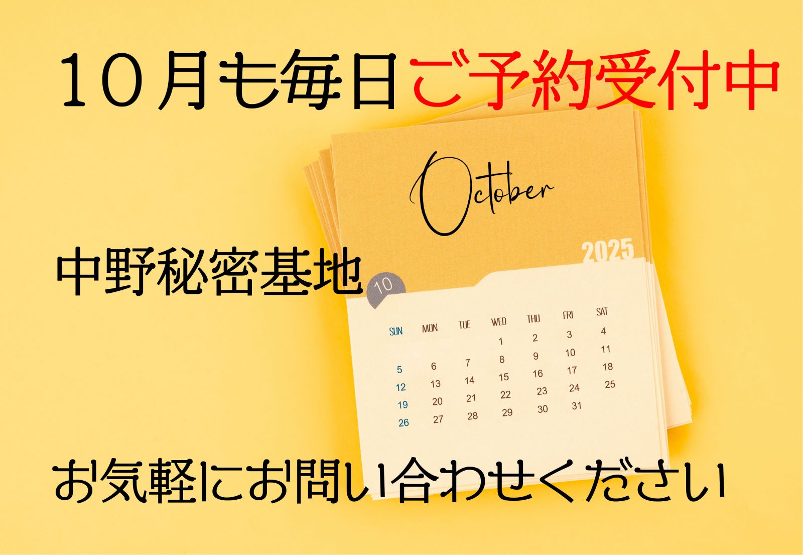 10月も毎日、ご予約受付中!!