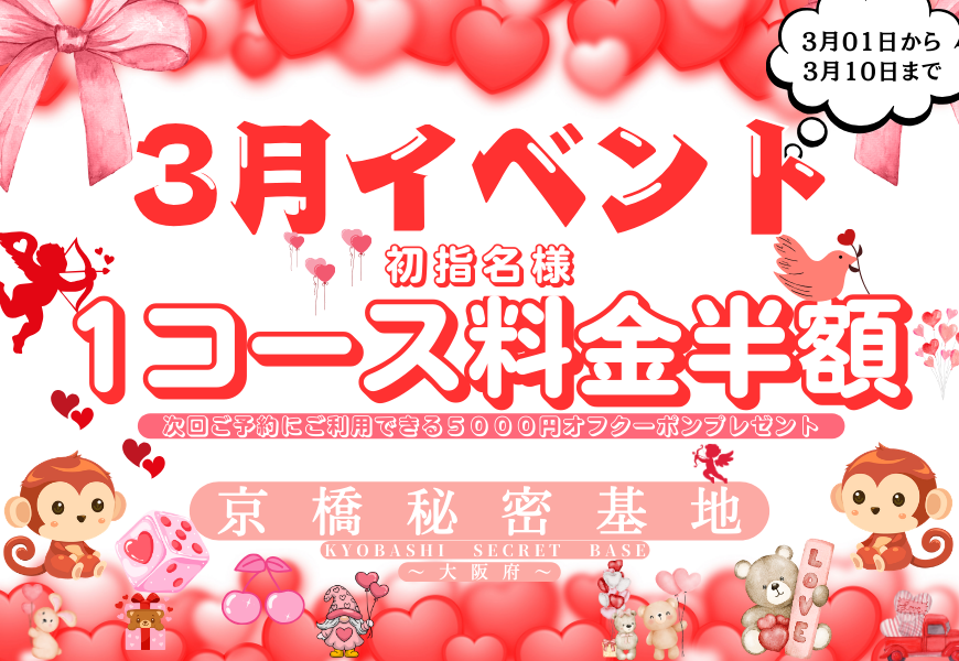初指名様1コース料金半額&次回ご予約時5000円オフ